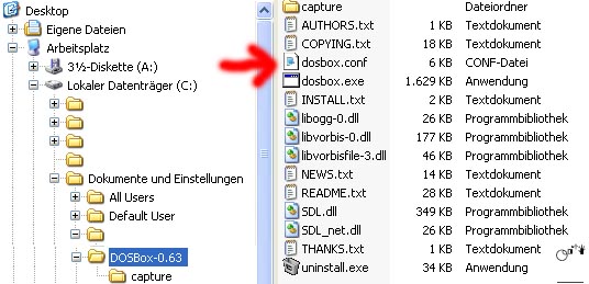 Dazu öffnen Sie die dosbox.conf Datei mit dem "Editor"