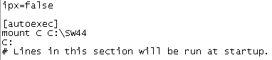 Wir müssen die dosbox.conf Datei noch verändern, damit das SW44 Programm startet.