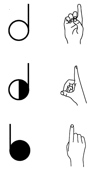 Die Darstellung von drei Handstellungen am