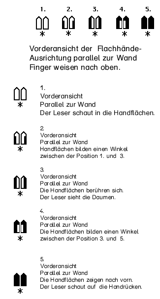 Darstellung der Flachhände in der expressiven Sichtweise ! Wir schauen uns selbst beim Gebärden zu .(expressive Sichtweise) |