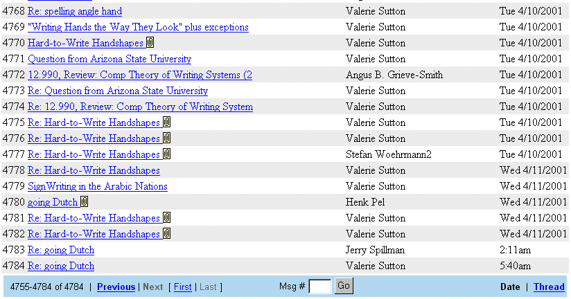 Im SignWriting -List Archiv werden alle Mitteilungen gesammelt und stehen somit auch den "Neuen" als wertvolle Informationsquelle zur verfügung .