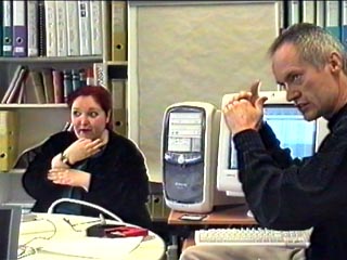 Workshop in Zürich : GebärdenSchrift schreiben mit dem Programm Valerie Sutton - die Erfinderin von "Sutton SignWriting" bietet die Software SignWriter 4.4 jetzt kostenlos als "Download -Version auf ihrer Web-site an : Das ist einfach phantastisch ! ![]() http://www.signwriting.org/forums/software/sw44/download In diesem Workshop stand die Beherrschung des Computerprogramms SignWriter 4.4 im Mittelpunkt. Die Teilnehmer verfügten bereits über solide Grundkenntnisse im Lesen der GebärdenSchrift. Sie hatten sogar schon eine umfangreiche handschriftliche Videotranskription von "Goldlöckchen" gefertigt !!! Zunächst möchte ich vorausschicken, dass das Schweizer Team außerordentlich günstige Rahmenbedingungen für diesen Workshop bieten konnte. Hardware und Software waren perfekt vorbereitet. Dolmetscherinnen sicherten ab, dass die Inhalte zwischen den beiden Sprachen (Lautsprache und Deutsch-Schweizerische Gebärdensprache) störungsfrei übermittelt wurden. Die Räumlichkeiten waren ideal und auch für das leibliche Wohl war hervorragend gesorgt . ;-) Wir haben in unserem kleinen Workshop viele verschiedene Themen behandelt, die ich hier im Überblick kurz anreißen möchte. Von hier noch einmal ganz herzliche Grüße an Dr. Penny Boyes Braem und an ihr gesamtes Team. |
