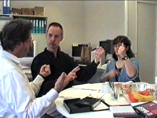 Wir übten auch das Anfertigen von .gifs und das Anfügen solcher .gifs als Anlage an emails. Gerade diese Technik ist besonders wichtig , um die eigenen GebärdenSchrift-Zeichen mit anderen GebärdenSchriftlesern im Internet diskutieren zu können. Abschließend fanden wir noch die Zeit, um die Arbeitstechnik beim Übersetzen von Videomaterial in geschriebene GebärdenSchrift-Texte zu besprechen.