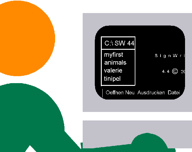 Drücken Sie die Alt-Taste und den ersten Buchstaben für die aufgeführten Befehle (z.B. Alt-O für Öffnen) Drücken Sie die Esc-Taste um Funktionen abzubrechen Dateifenster-Kommandos Öffnen - eine existierende Datei öffnen Neu - eine neue Datei erstellen Ausdrucken - eine Datei drucken Datei - eine Datei löschen, umbenennen oder exportieren Verzeichnis - das aktuelle Verzeichnis wechseln Einrichten - wechseln des Druckes, Landes oder Wörterbuchs (dictonary) Beenden - SignWriter verlassen Bild ab - Taste - im Dateifenster abwärts rollen Bild auf - Taste - im Dateifenster aufwärts rollen |