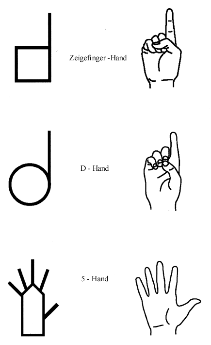 Zur Darstellung der Finger werden Striche an die Grundformen angefügt.