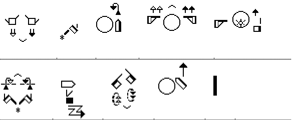 Na ? Können Sie mit diesen Zeichen jetzt etwas anfangen ? Interessant ist jetzt folgendes: Es geht nicht darum, ob Sie die deutsche oder amerikanische Bedeutung dieser ASL-Gebärden kennen. Tatsächlich ist das sehr unwichtig. Spannend ist nur, dass diese GebärdenSchrift-Zeichen auf der ganzen Welt gelesen werden können!! Es geht darum, ob Sie die Handform und die Bewegungsausführung nachvollziehen können. Im Prinzip wird also ein Leser in Japan , Nicaragua oder Osnabrück zu der gleichen ( oder zumindest sehr ähnlichen) Ausführung der Gebärden kommen. Es handelt sich ja lediglich um Bewegungsbeschreibungen ! Ein ASL-kundiger Zuschauer dürfte dann nur geringe Schwierigkeiten haben, den Inhalt des Vortrages zu verstehen. Dass diese ausgeführten Bewegungen in der Amerikanischen Gebärdensprache (ASL) eine ganz spezielle Bedeutung haben, ist zunächst nicht so wichtig. Vielleicht haben die gleichen Bewegungen in einer anderen Gebärdensprache eine ganz andere Bedeutung ? Mit der GebärdenSchrift können wir das nun relativ einfach erforschen. Natürlich können wir "sinnvolle" Bedeutungsinhalte schneller erfassen und auswendig lernen als "sinnarme" Zufallsprodukte. Das trifft ja auch auf Buchstaben- oder Zahlenkombinationen zu. Trotzdem wäre es ein ausgesprochen spannendes Experiment, wenn Menschen einen GebärdenSchrift-Text in einer Gebärdensprache lesen und vortragen sollen, wenn sie diese Gebärdensprache selbst nicht beherrschen. Ob die Sprachkundigen diesem Vortrag folgen könnten ?