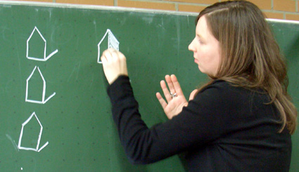 Wir schreiben unsere Dokumente mit dem GebärdenSchrift-Programm. Einzelne Zeichen können wir aber auch mit der Hand schreiben. |