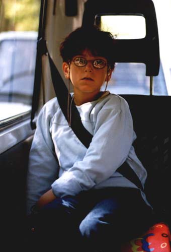 Hannan sitzt im Bus .