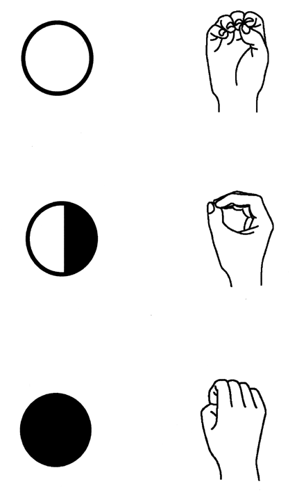 Die Darstellung von drei Handstellungen am Beispiel der offenen Faust. (FA - O)