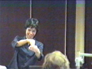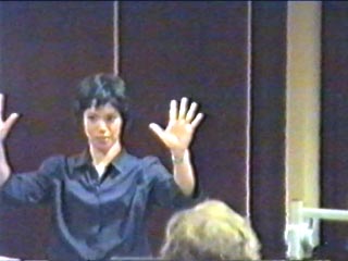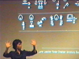 Die GebärdenSchrift eignet sich für Texte in LBG oder in DGS. Die angebotenen Workshops an der VHS Osnabrück sind sehr hilfreich, um schnell mit dem GebärdenSchrift- Computerprogramm vertraut zu werden. Die Zuschauer begleiten den Vortrag mit großer Aufmerksamkeit. |