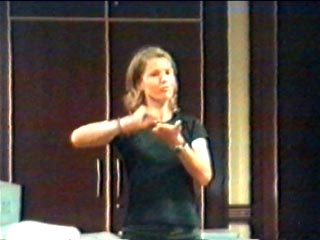 In einem beeindruckenden Finale stellte Anke Hagedorn noch einmal die Vorzüge der GebärdenSchrift aus der Perspektive gehörloser Anwender heraus. ![]() |