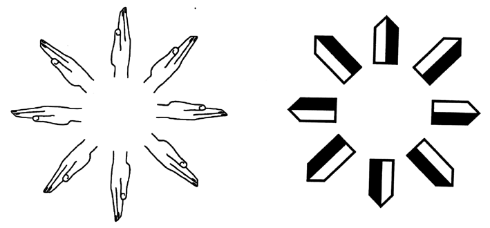 Durch diese Form der Darstellung lassen sich sämtliche Ausrichtungen der Hände problemlos darstellen und wiedererkennen.